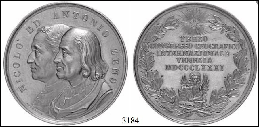 Medaglia coniata, realizzata nel 1881, per ricordare il terzo Congresso Geografico Internazionale riunitosi a Venezia dal 15 al 22 settembre 1881, fu organizzato dall'illustre Geografo Della Vedova.