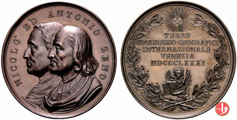 nel campo, tra rami d'alloro legati in basso da nastro e sormontati da stella raggiante: TERZO = CONGRESSO GEOGRAFICO = INTERNAZIONALE = VENEZIA = MDCCCLXXXI = leone di S. Marco di fronte