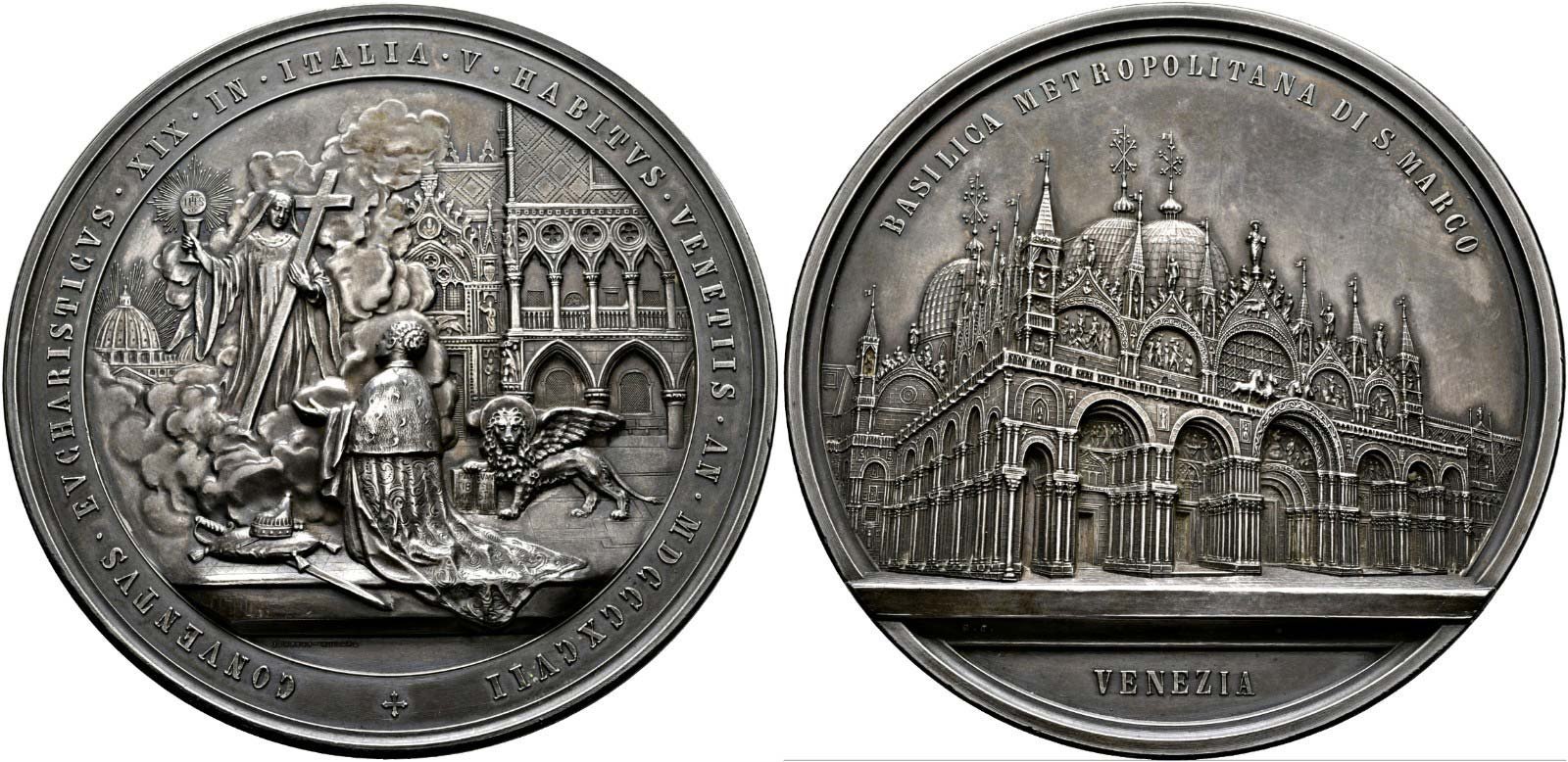 Medaglia coniata di massimo modulo, emessa nel 1897, per ricordare il XIX Congresso Eucaristico Nazionale a Venezia.