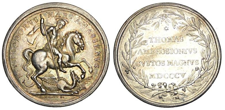 | Medaglia coniata, realizzata nel 1805 per la Scuola Grande di San Teodoro a Venezia. | |||||||