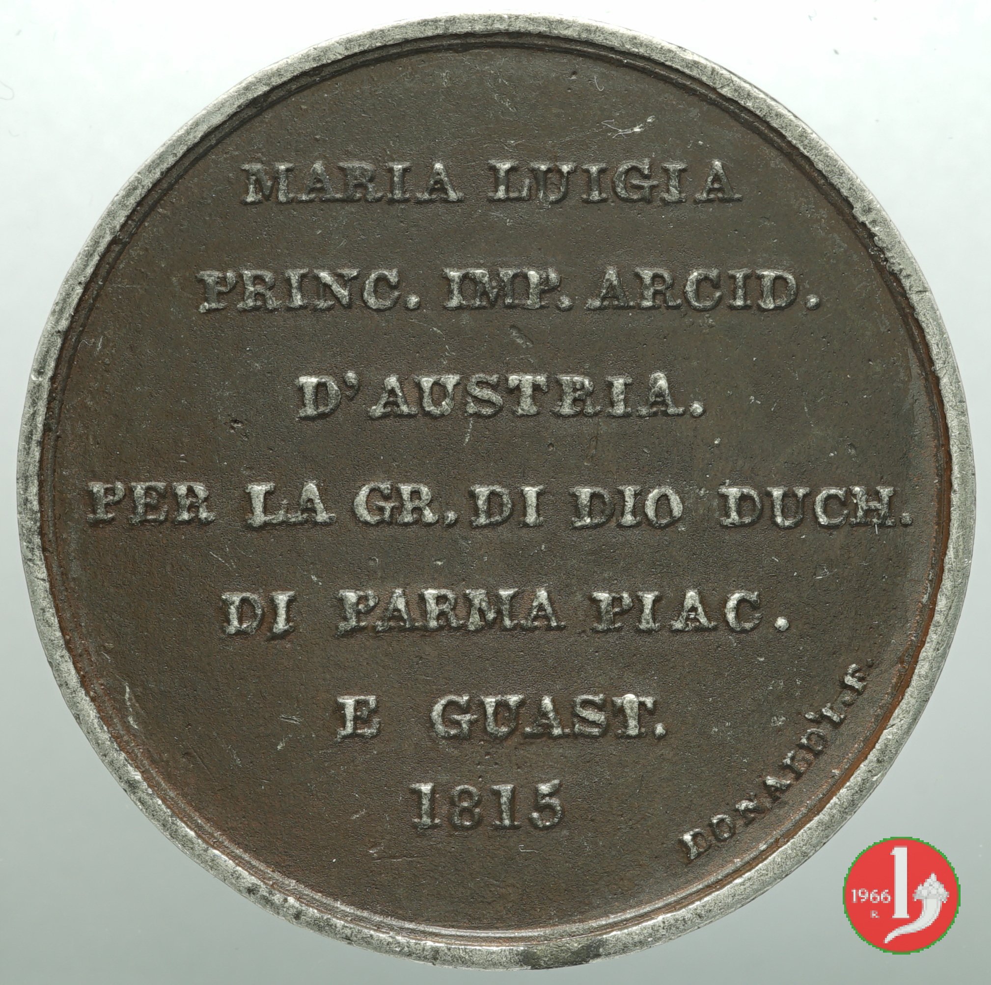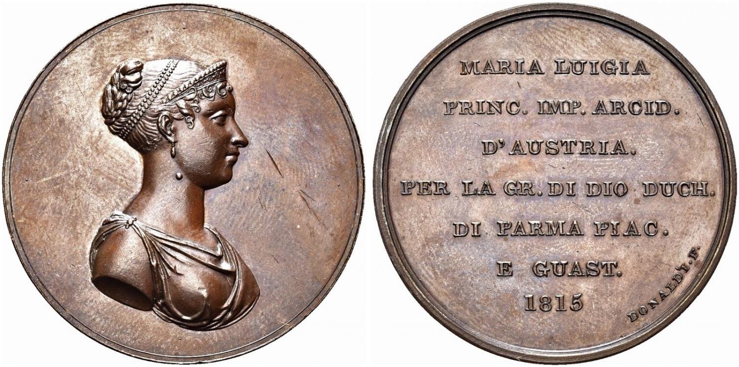 Medaglia coniata, emessa nel 1815 per ricordare l'investitura di Maria Luigia a Duchessa di Parma, Piacenza e Guastalla.