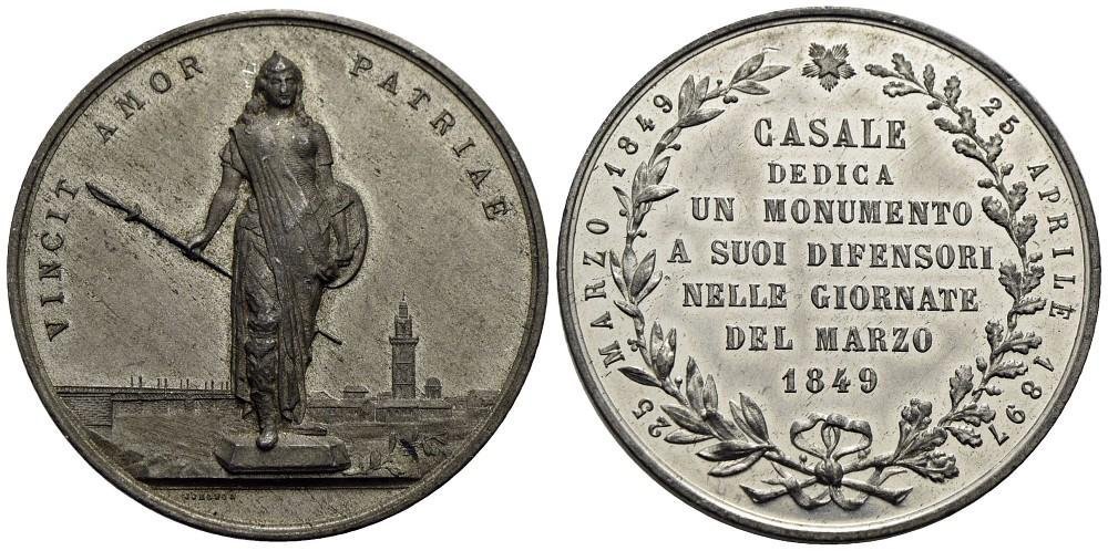Medaglia coniata, emessa il 25-04-1897 a ricordo dell'inaugurazione del Monumento La Difesa di Casale, opera dello Scultore Francesco Porzio (1854-1934).