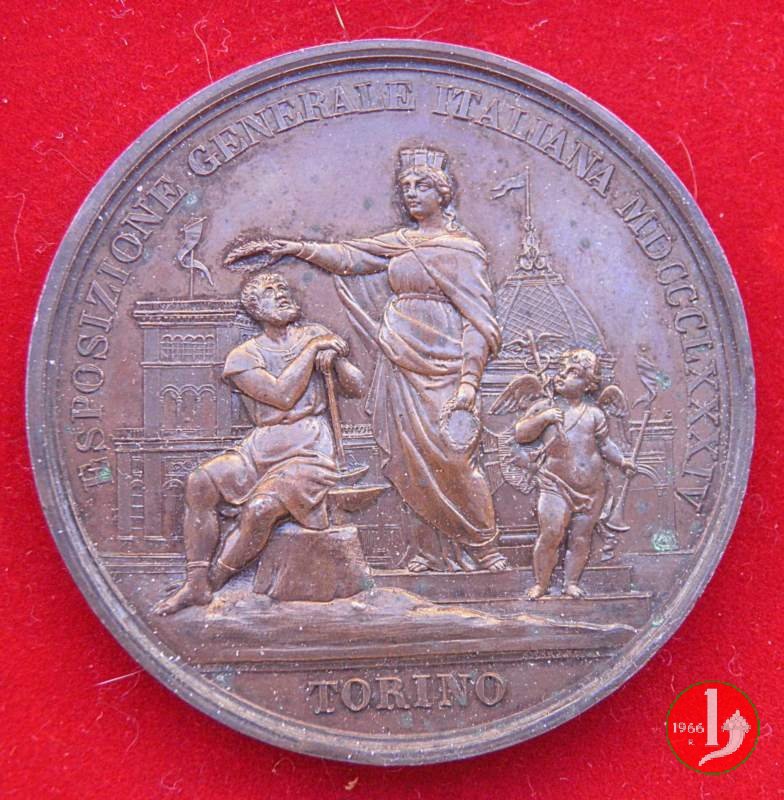 | Medaglia coniata, realizzata nel 1884 per ricordare l'Esposizione Generale Italiana a Torino. | ||||||
