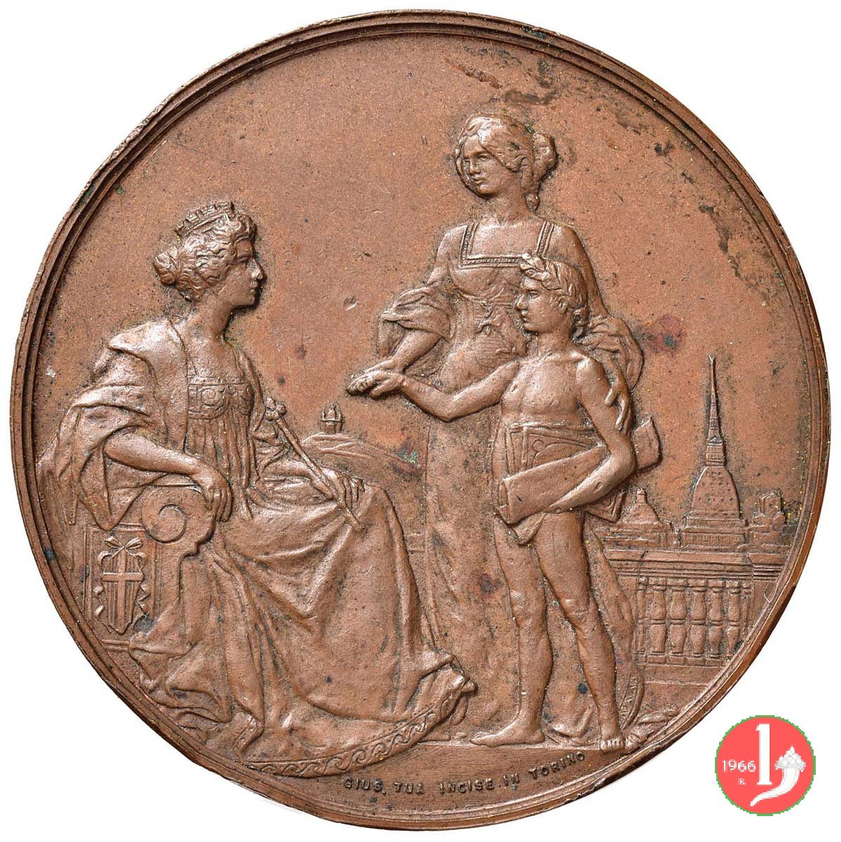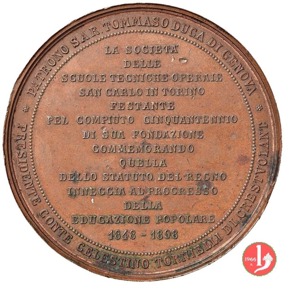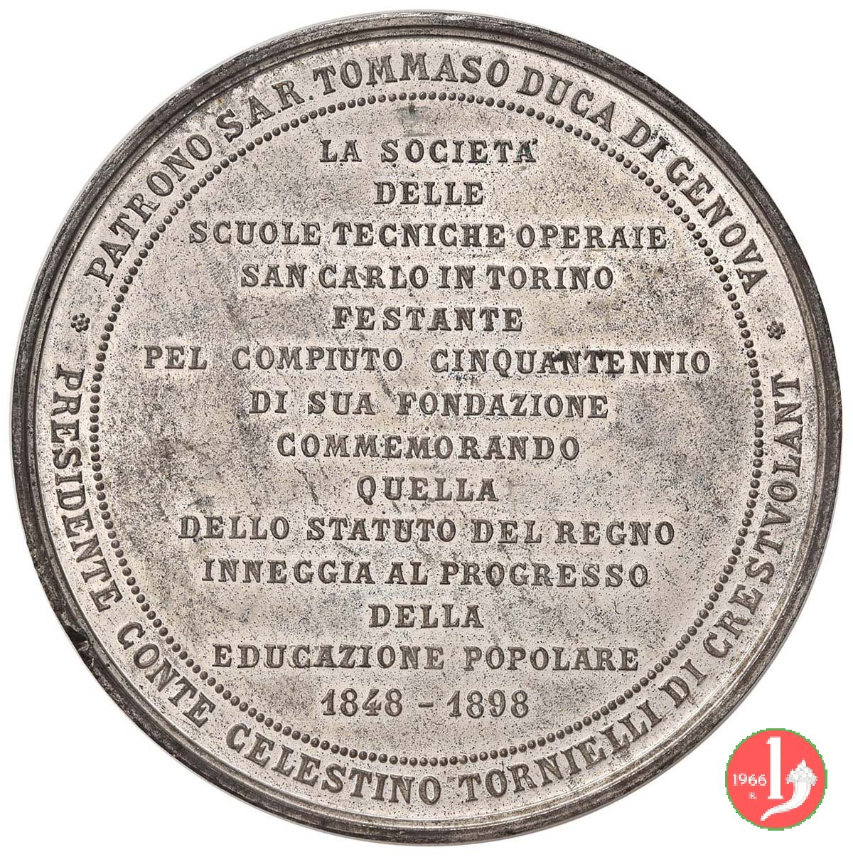 | Medaglia coniata, realizzata nel 1898 a ricordo del cinquantenario delle Scuole Tecniche Operaie San Carlo in Torino. | |||||