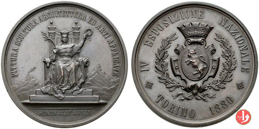 | Medaglia coniata, realizzata nel 1880 per ricordare l'Esposizione Nazionale di Pittura, Scultura ed arti applicate in Torino. | |||||||