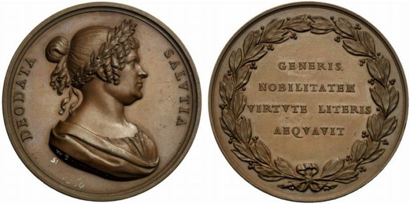 | Medaglia coniata, realizzata per la serie Uomini Illustri Piemontesi, a ricordo di Diodata Roero Saluzzo (1774-1840) poetessa e letterata. | |||||