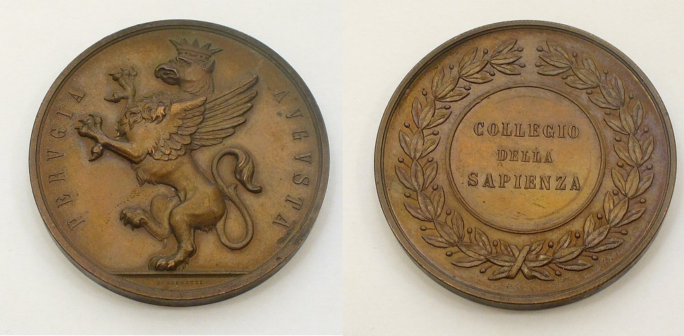 Medaglia premio coniata per premiare gli alunni del Collegio della Sapienza di Perugia.