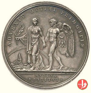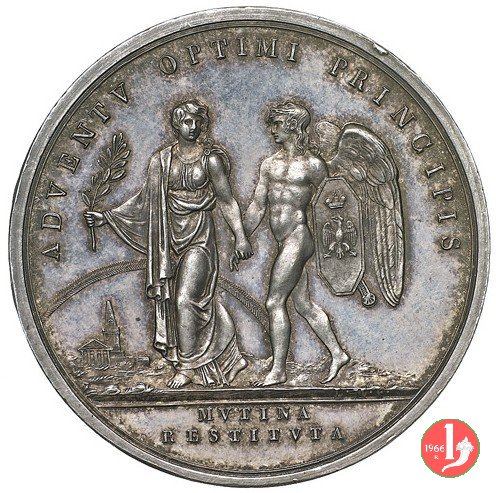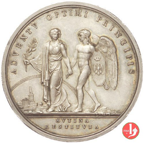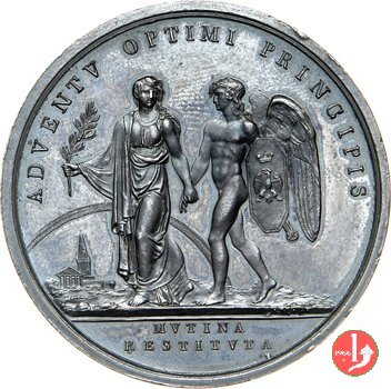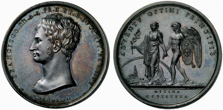 Medaglia coniata, realizzata nel 1814 a ricordo del rientro di Francesco IV in Modena a seguito della restaurazione post-napoleonica.