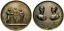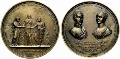 busti affiancati di 3/4, verso il centro, su rami d'alloro