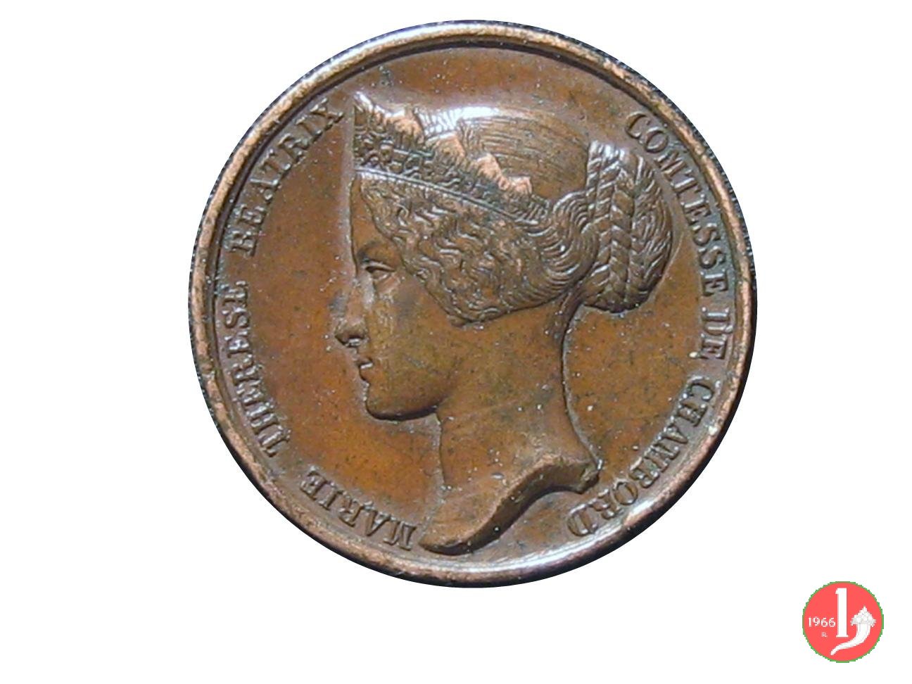 Coniata per celebrare le nozze di Maria Teresa (figlia di Francesco IV) con il conte Enrico di Chambord, pretendente legittimista al trono di Francia.