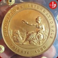 Medaglia coniata, emessa nel 1898, per ricordare l'Esposizione Internazionale di Articoli alimentari, industriali, commerciali, d'igiene e sportivi in Trieste.