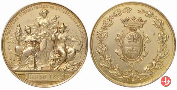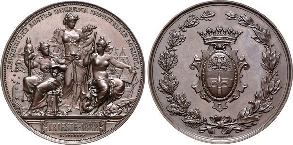 | Medaglia coniata, realizzata nel 1882, per ricordare l'Esposizione Industriale Agricola di Trieste. | ||||||