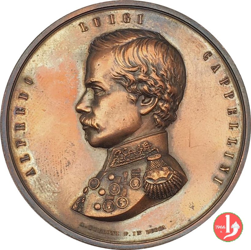 Medaglia coniata, emessa il 20-07-1866, alla memoria del capitano Alfredo Cappellini e del suo equipaggio, comandante la cannoniera corazzata "Palestro" colpita, incendiata e successivamente saltata in aria nel tentativo di recare soccorso alla "Re d'Italia".