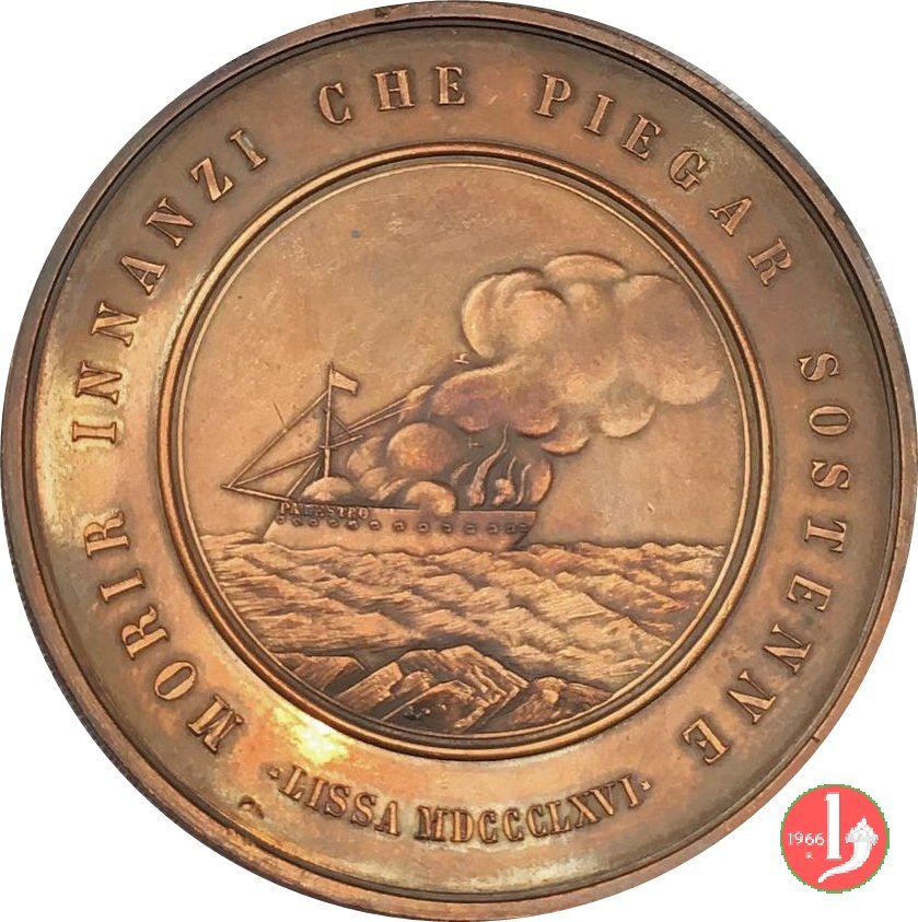 nel campo, entro medaglia: MORIR INNANZI CHE PIEGAR SOSTENNE - LISSA MDCCCLXVI
