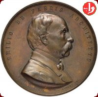 Medaglia coniata, eseguita nel 1876 a ricordo dell'Architetto Emilio de Fabris (1808-1883), progettista della facciata della Cattedrale di Santa Maria del Fiore in Firenze. | ||||
