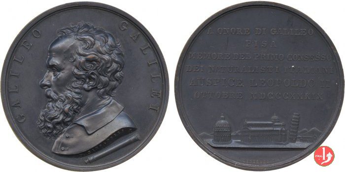 nel campo: A ONORE DI GALILEO = PISA = MEMORE DEL PRIMO CONSESSO = DEI NATURALISTI ITALIANI = AUSPICE LEOPOLDO II = OTTOBRE MDCCCXXXIX