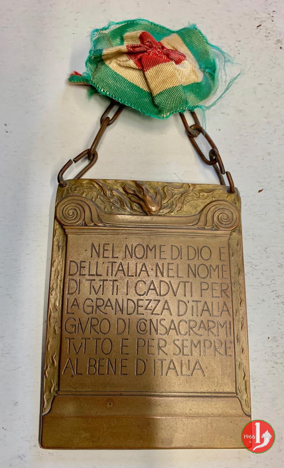 su ara ardente: NEL NOME DI DIO E DEL = L'ITALIA NEL NOME = DI TUTTI I CADUTI PER = LA GRANDEZZA D'ITALIA = GIURO DI CONSACRARMI = TUTTO E PER SEMPRE = AL BENE D'ITALIA
