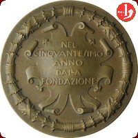 entro ghirlanda di calici floreali fermata da nastri, entro cartiglio : NEL = CINQVANTESIMO = ANNO = DELLA = FONDAZIONE