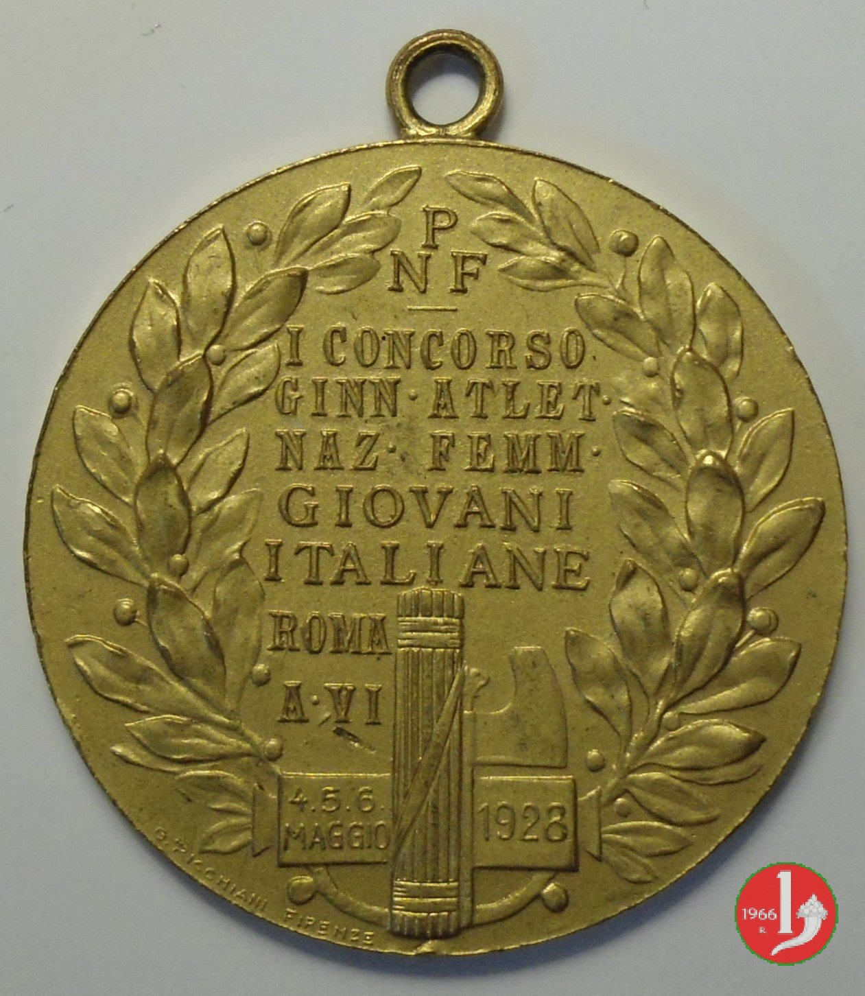 nel campo, entro rami d'alloro, fermati in basso da fascio verticale posto su targa: P = N F = - = I CONCORSO = GINN • ATLET • = NAZ • FEMM • = GIOVANI = ITALIANE = ROMA = A • VI