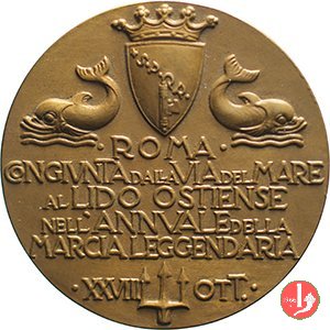 | Medaglia coniata, emessa il 28-10-1928 a ricordo dell'inaugurazione dell'autostrada Roma-Lido di Ostia su progetto dell'Ing. Pietro Punicelli (poi chiamata Strada Statale 8 - Via del Mare). | ||||||