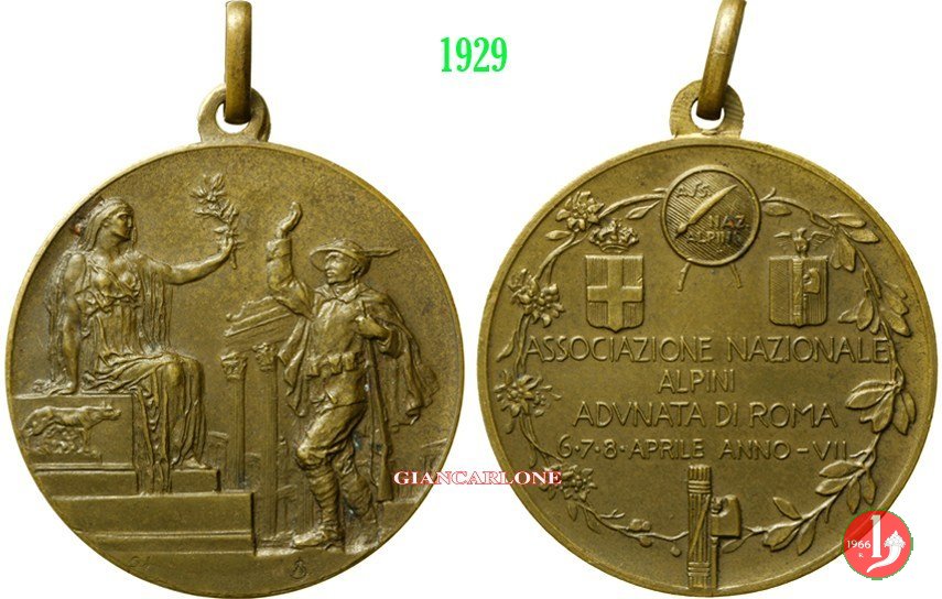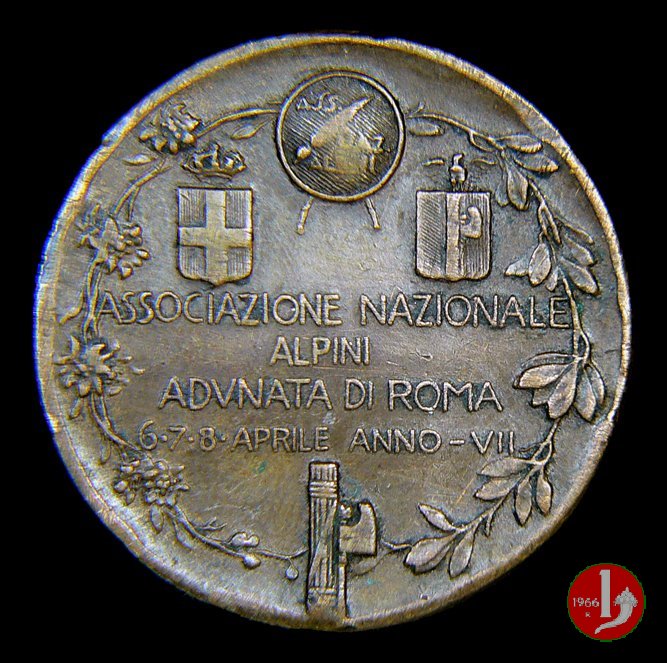 Medaglia coniata, realizzata nel 1929 per ricordare il decimo raduno Nazionale degli Alpini a Roma.