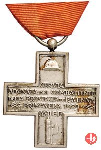 | Medaglia a Croce greca coniata, realizzata nel 1929 per ricordare l'adunata combattenti della Provincia di Ravenna a Cervia. | ||||