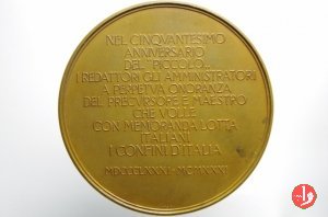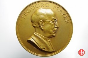 Medaglia coniata, emessa il 29-12-1931 per ricordare il cinquantesimo anniversario di fondazione del quotidiano "Il Piccolo" e il suo fondatore: il giornalista Teodoro Mayer, pseudonimo di Biniamin David Vita (1860-1942).