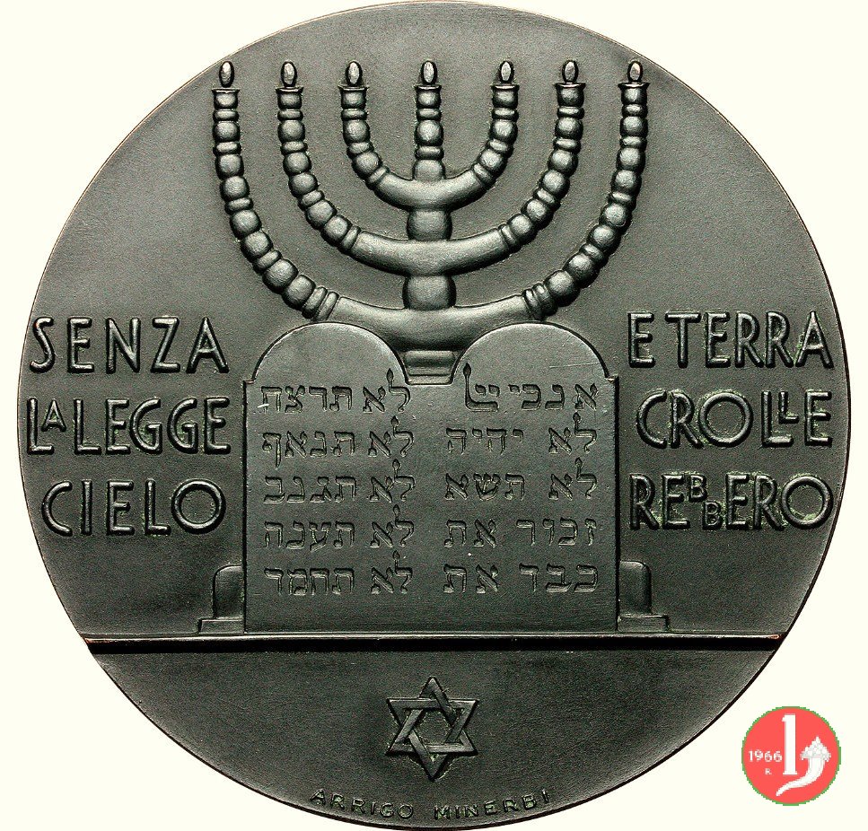 Medaglia coniata, realizzata dalle comunità israelitiche italiane per ringraziare il Governo Italiano per la promulgazione della 'Legge Falco' del 30-10-1930, mediante la quale veniva data libertà e dignità di culto alla Religione Ebraica.
