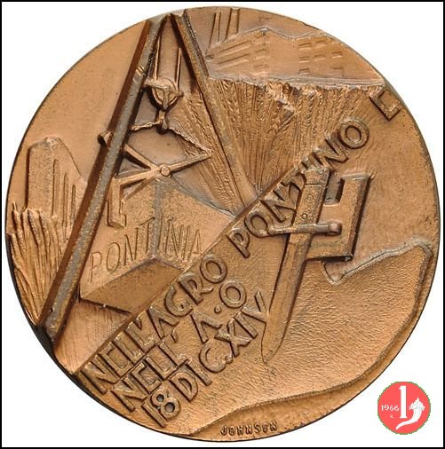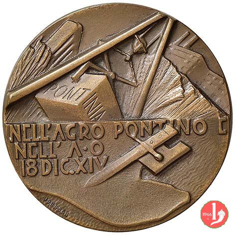 | Medaglia coniata, realizzata nel 1936, per ricordare la fondazione della Città di Pontinia (LT). | ||||||