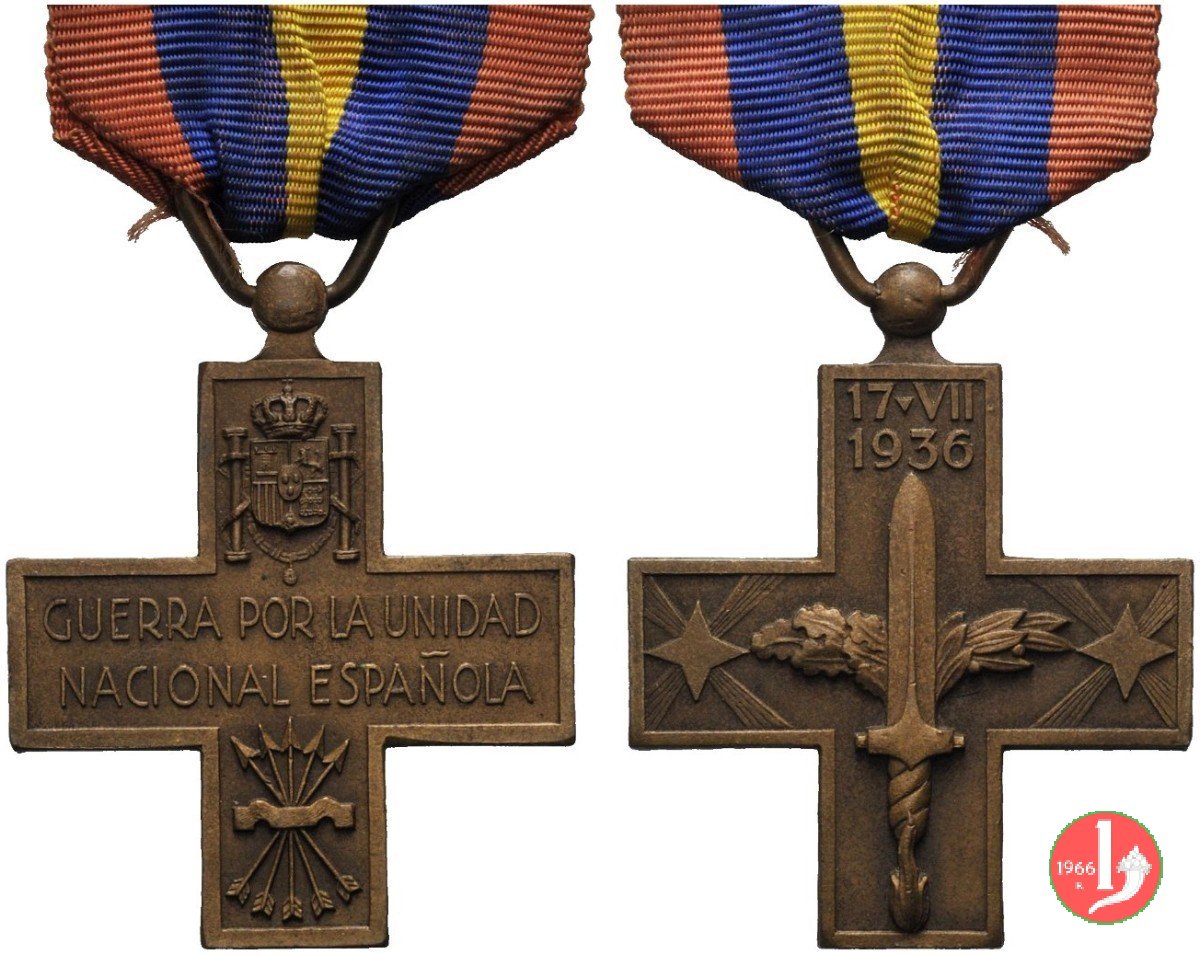 Medaglia a Croce coniata, realizzata nel 1938, per i Volontari di Guerra nella Campagna di Spagna.