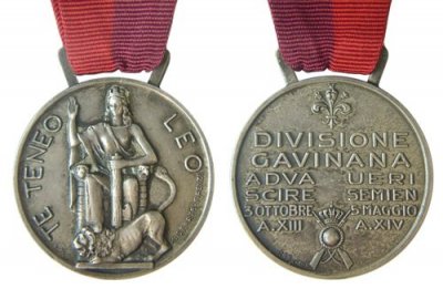 Medaglia coniata, realizzata nel 1936 per la Divisione Gavinana in Etiopia.