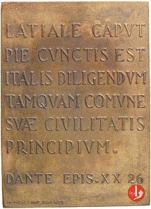 nel campo: LATIALE CAPVT = PIE CVNCTIS EST = ITALIS DILIGENDVM = TAMQVAM COMVNE = SVAE CIVITATIS = PRINCIPIVM. = DANTE EPIS. XX 26