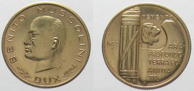 | Medaglia coniata, riprende al V l'immagine della moneta da 20 LIRE detta CAPPELLONE del 1928. | ||||
