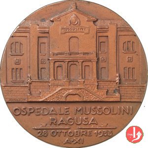 in esergo: OSPEDALE MUSSOLINI = RAGUSA = due fasci orizzontali = 28 OTTOBRE 1933 = A • XI