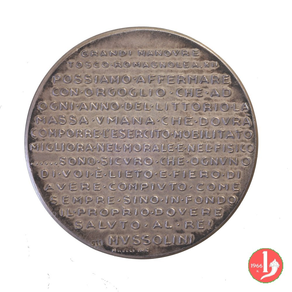 Medaglia coniata, realizzata nel 1934 a ricordo del discorso di Mussolini tenuto in occasione delle Grandi Manovre Tosco-Romagnole.
