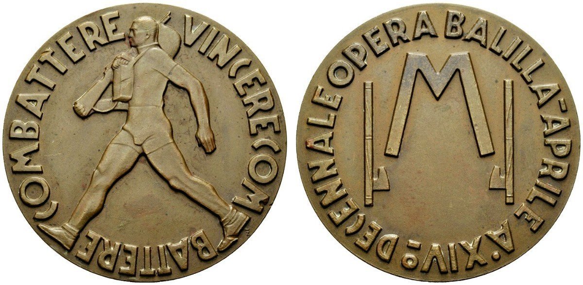 | Medaglia coniata, realizzata nel 1936 a ricordo del decennale di fondazione dell'Opera Balilla. | ||||