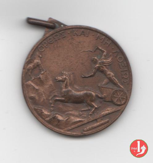 Medaglia coniata, provvista di nastro verde, rosso e giallo.