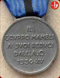 nel campo: IL = GRVPPO MAMELI = AI SVOI REDVCI = DALL' A.O. = 1936 • XV
