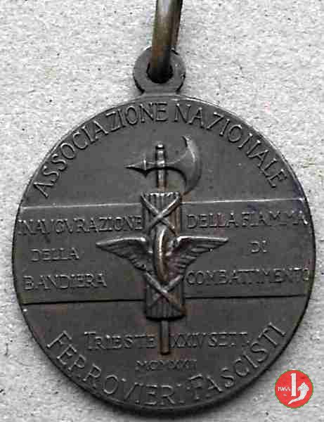 ruota alata su fascio repubblicano in palo, con lama a dx, sovrapposto a nastro con l'iscrizione: INAUGURAZIONE = DELLA = BANDIERA _ DELLA FIAMMA = DI = COMBATTIMENTO
