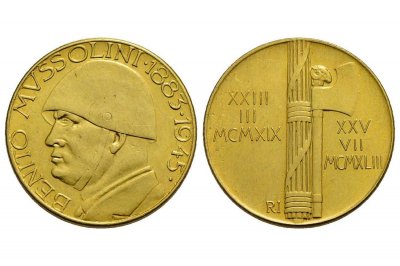 Medaglia coniata a ricordo di Benito Mussolini e dell'era fascista.