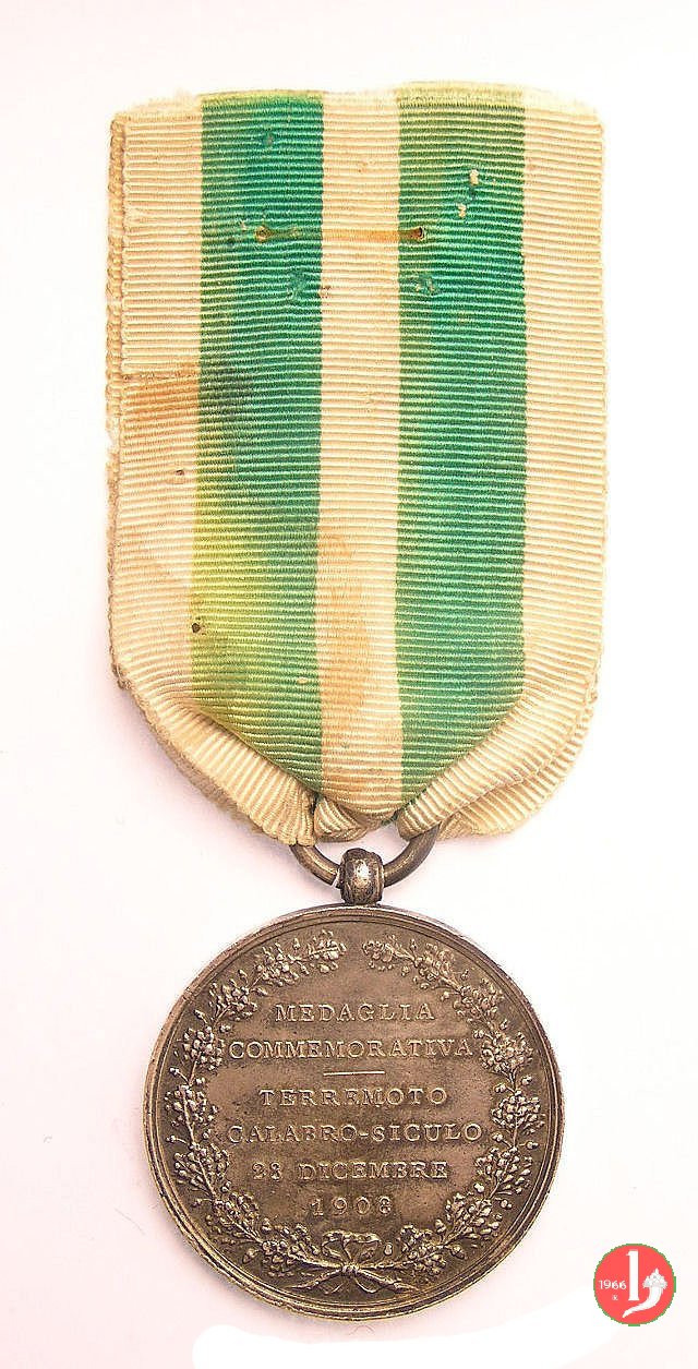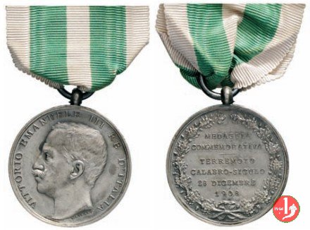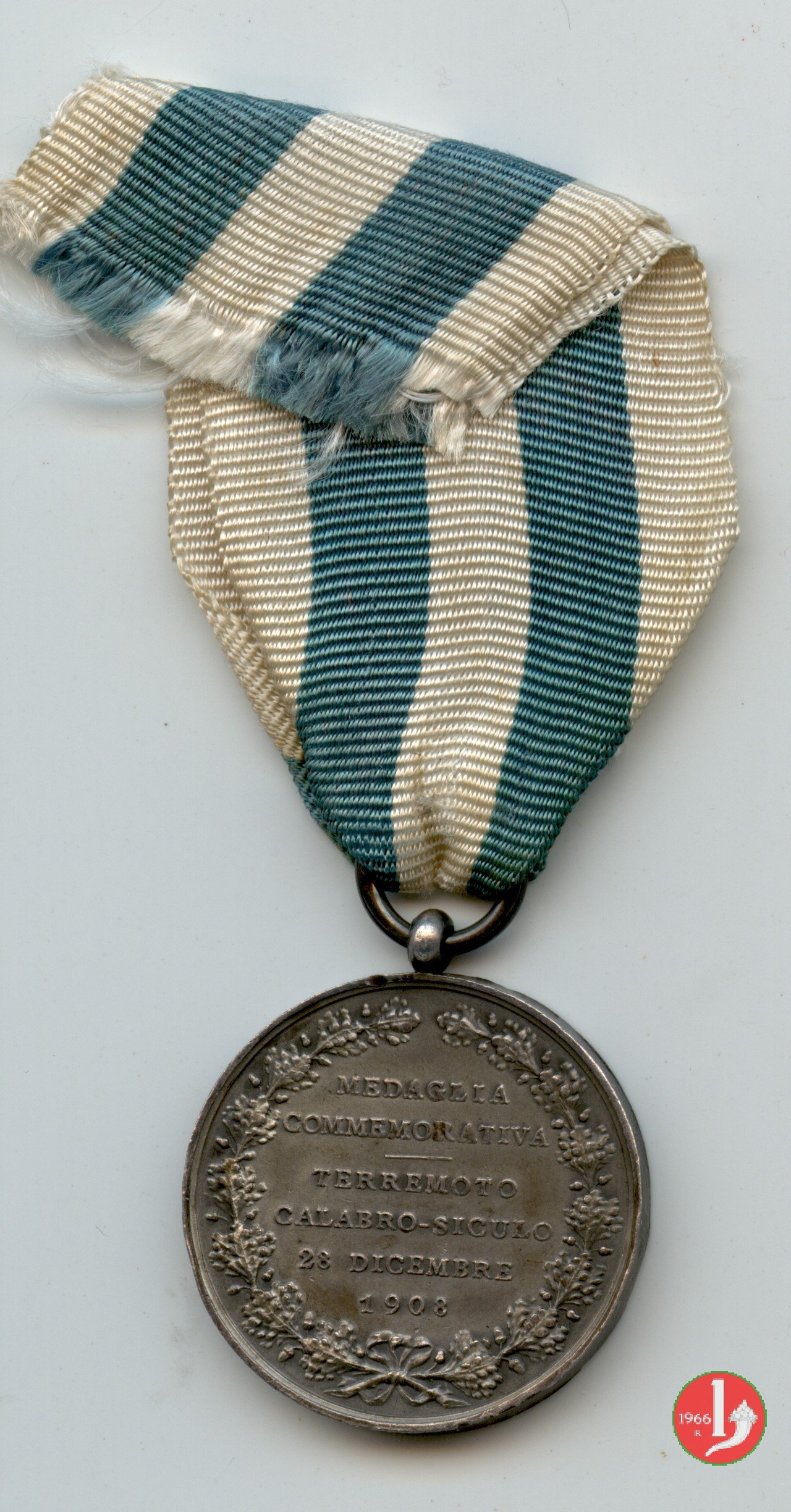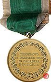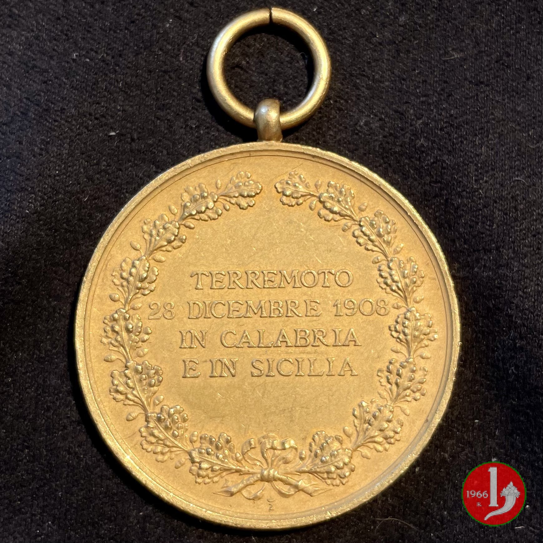 entro corona floreale legata da nastro in basso: MEDAGLIA = COMMEMORATIVA = - = TERREMOTO = CALABRO-SICULO = 28 DICEMBRE = 1908