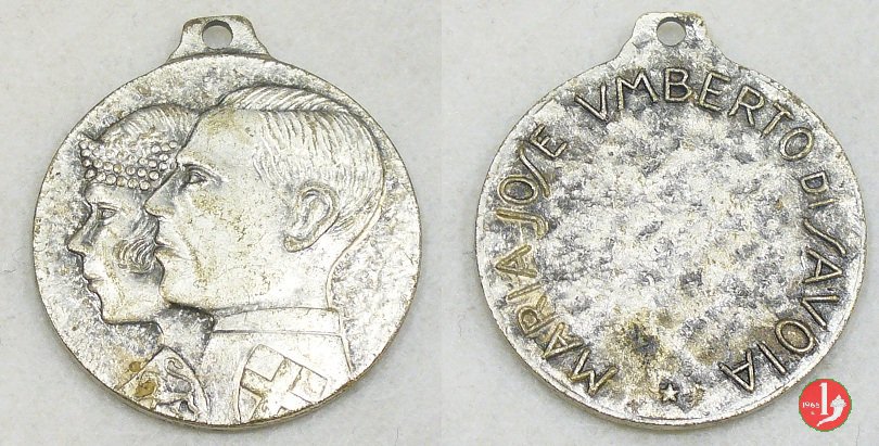 Medaglia coniata, emessa presumibilmente nel 1930, per ricordare il Matrimonio di Maria Josè e Umberto II. | |||