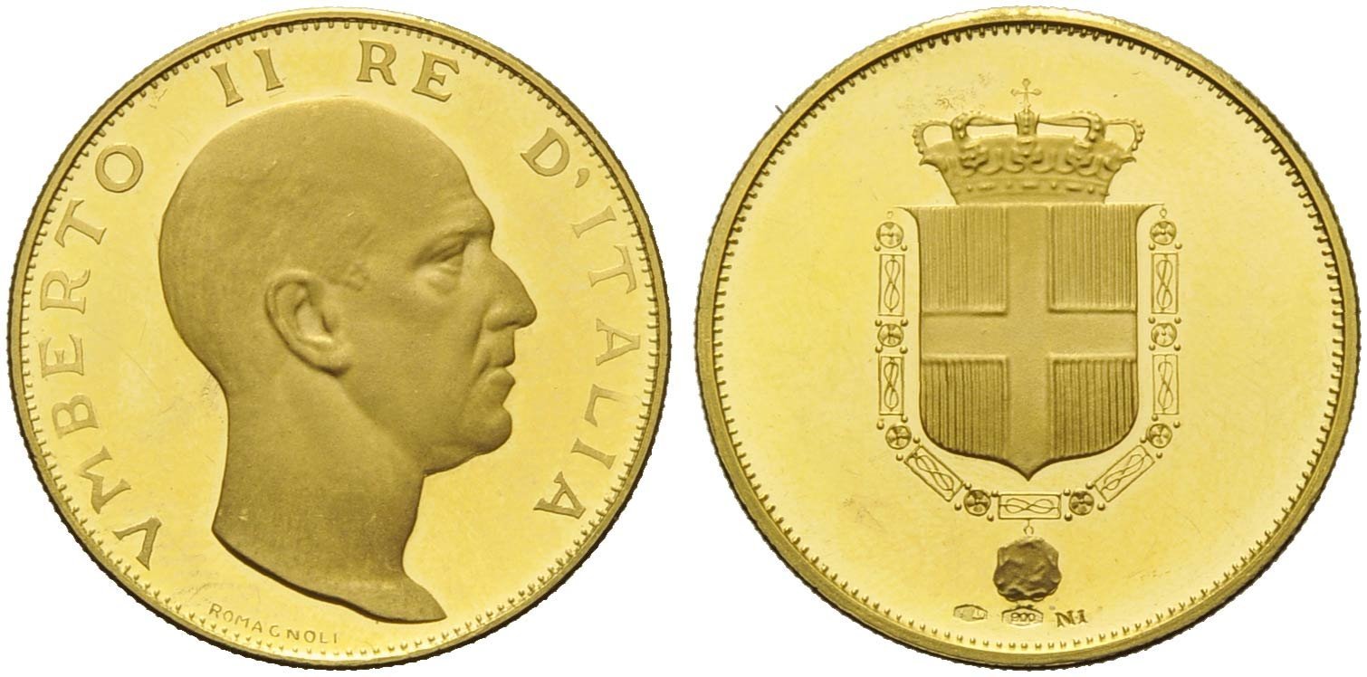 | Medaglia coniata, emessa nel 1946 per ricordare il regno di Umberto II. | |||||||||||||||