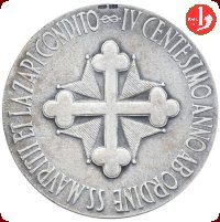 Medaglia coniata, realizzata nel 1972 per ricordare il quattrocentesimo anniversario della costituzione dell'Ordine dei Santi Maurizio e Lazzaro.