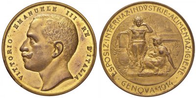 | Medaglia coniata, realizzata nel 1914 a ricordo dell'Esposizione Internazionale delle Industrie Alimentari e d'Igiene a Genova. | |||