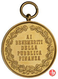 nel campo, entro rami d'alloro legati in basso da nastro: AI = BENEMERENTI = DELLA = PUBBLICA = FINANZA