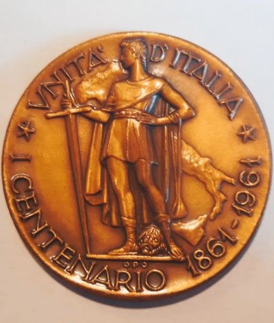| Medaglia coniata, realizzata nel 1961 dallo Stabilimento Lorioli di Milano, per ricordare il centenario dell'Unità d'Italia. | ||||||