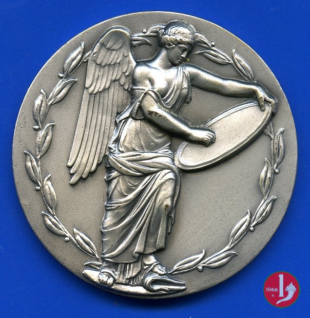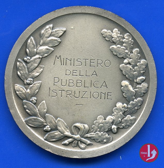 figura allegorica della Vittoria alata, posta tra fronde d'alloro, scrive su scudo volta a dx Tra rami d'alloro e quercia: MINISTERO= DELLA = PUBBLICA= ISTRUZIONE