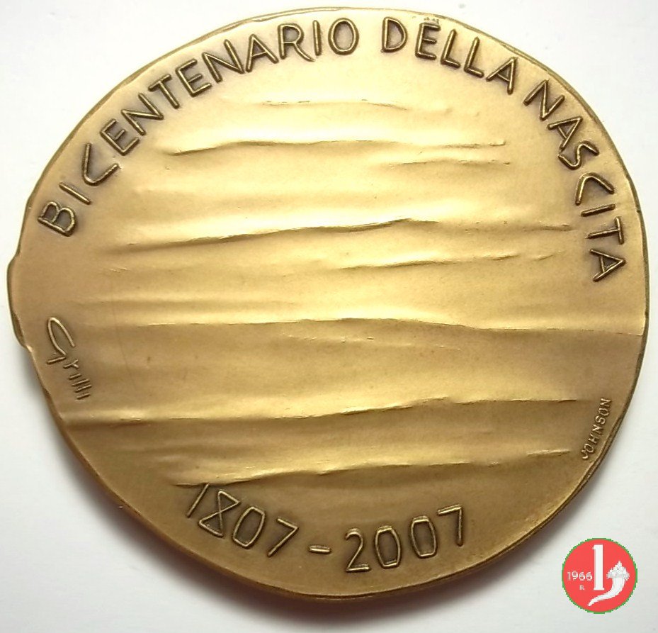 | Medaglia coniata, realizzata nel 2007 dallo Stabilimento Stefano Johnson di Milano, per celebrare il bicentenario della nascita di Giuseppe Garibaldi. | ||||||||||||||||