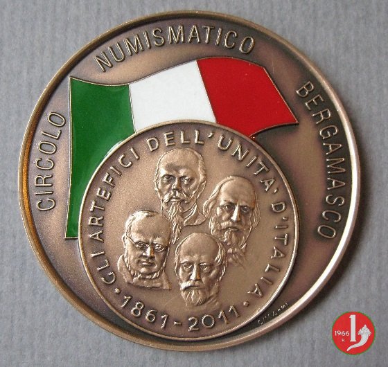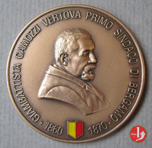 | Medaglia coniata, realizzata nel 2011 dalla Ditta OMEA di Milano per il Circolo Numismatico Bergamasco, a ricordo del centocinquantesimo anniversario dell'Unità d'Italia e del Primo Sindaco di Bergamo Gianbattista Camozzi Vertova (1818-1906), insigne numismatico e medaglista. | |||||